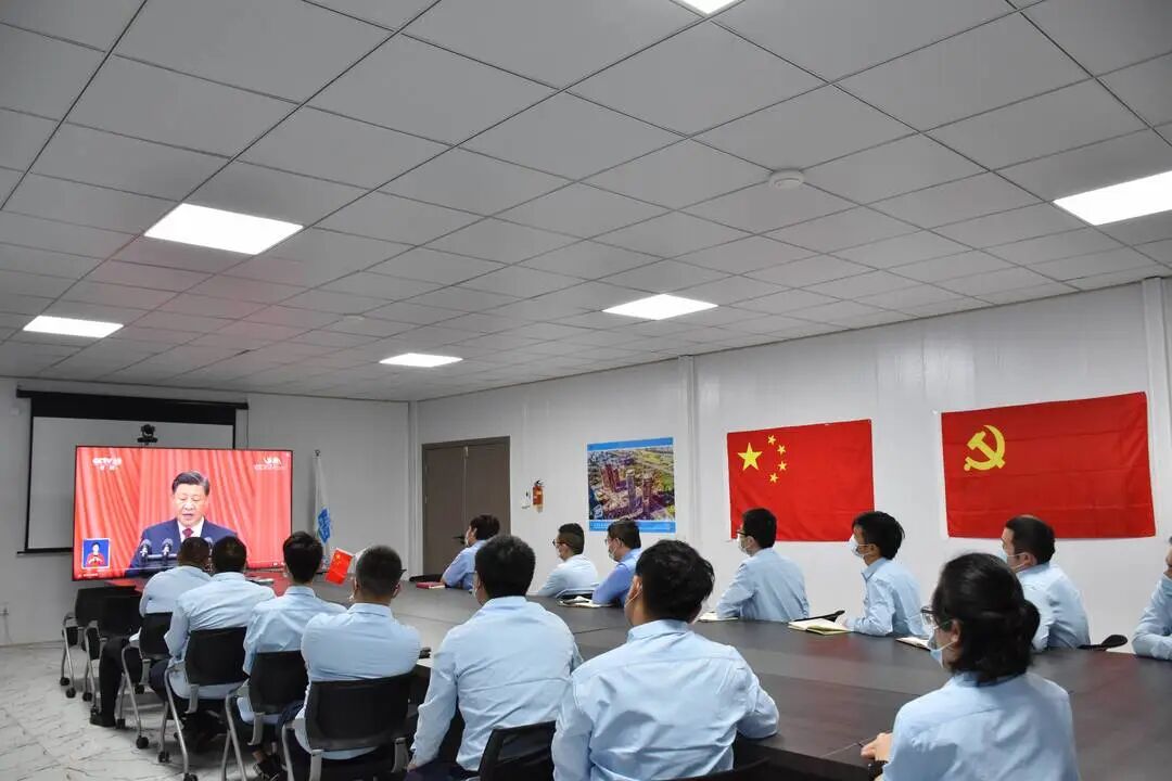 中建一局三公司党委组织公司全体党员干部职工,在185个会场,收听收看党的二十大会议盛况。其中党员1133名、团员300名、职工群众846名、劳务工友349名,同时41名海外党员同步收听收看,实现全员覆盖式学习收听收看会议盛况。